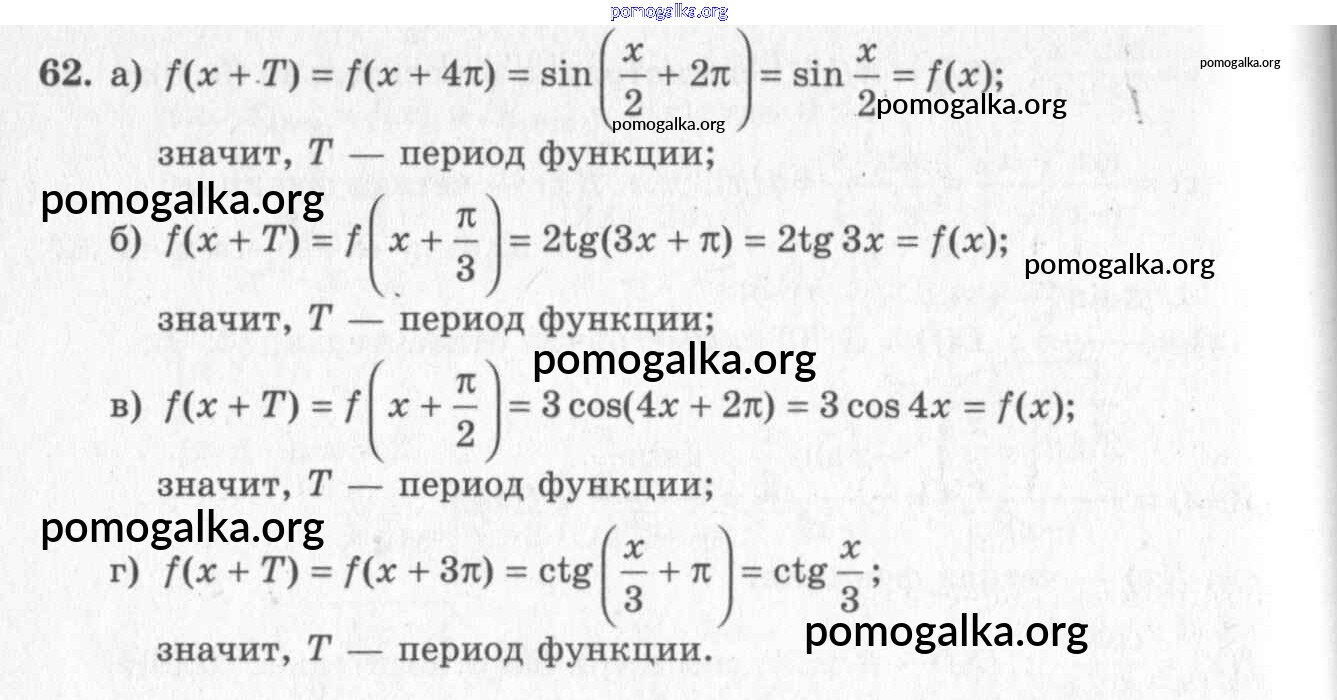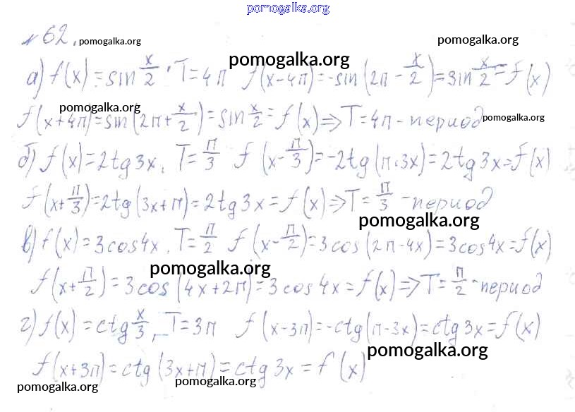 Готовые ответы - Алгебра и начала математического анализа 10-11 класс Колмогоров А.Н. - упражнение 62