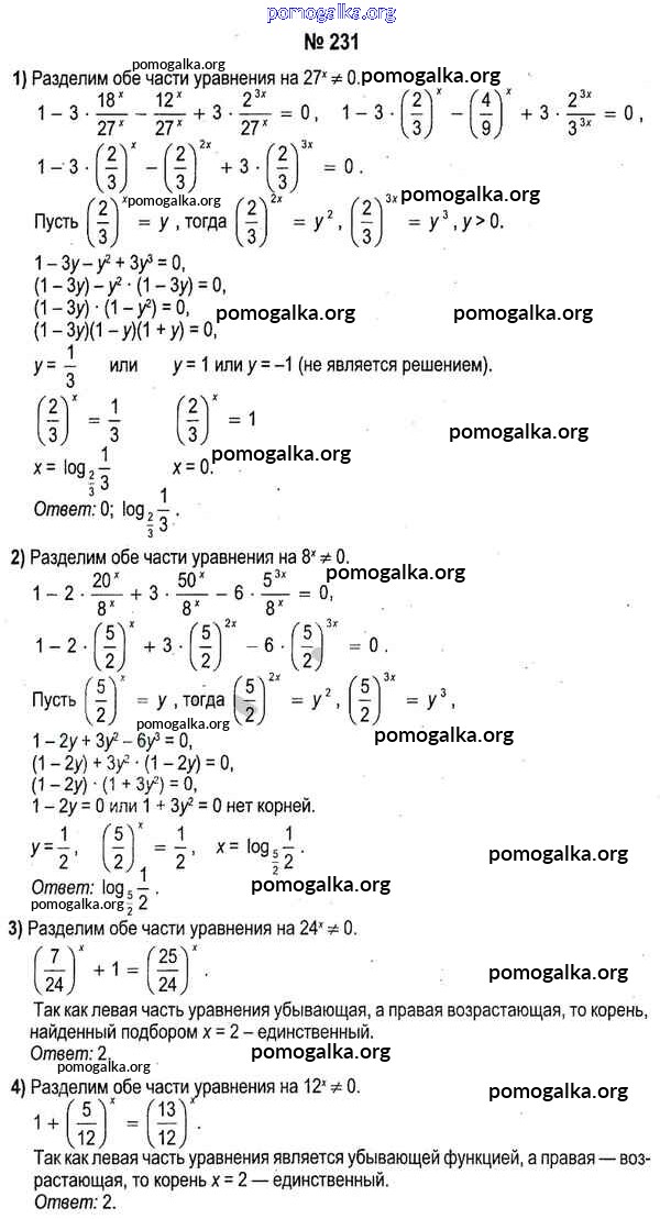 Готовые ответы - Алгебра 11 класс Кузнецова Е.П. - повторение 231