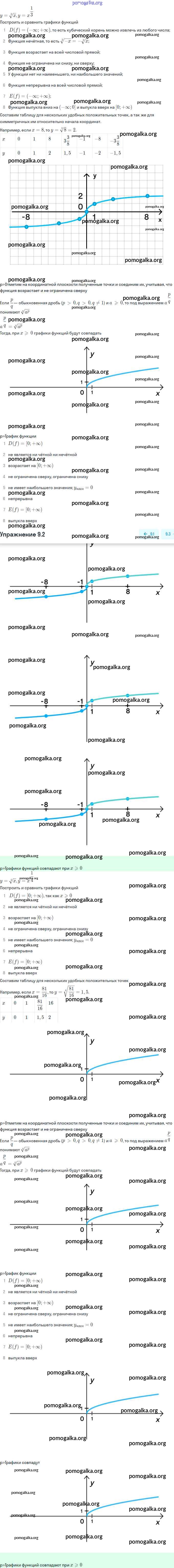 §9. Степенная функция, её свойства и график. №1-48