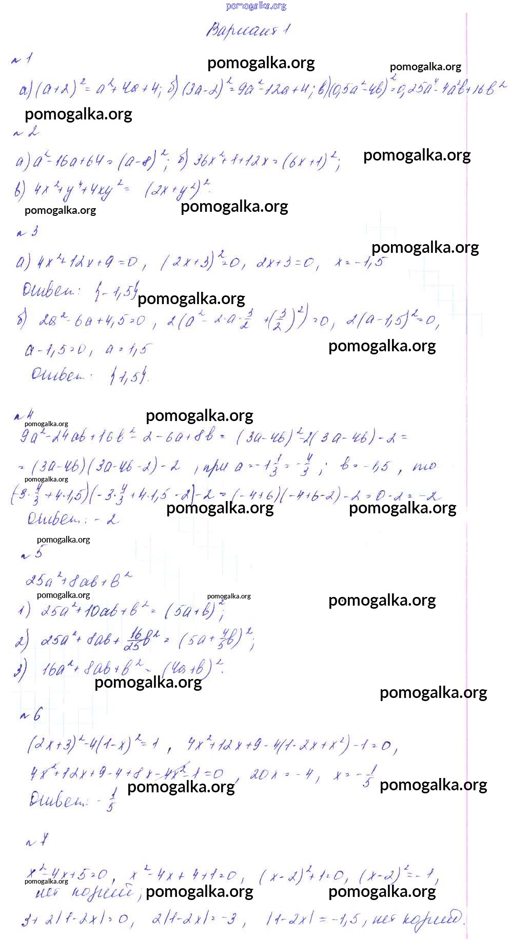 Готовые ответы - Алгебра 7 класс дидактические материалы. Методические рекомендации Феоктистов И.Е. - ср-15 самостоятельная работа Вариант 1