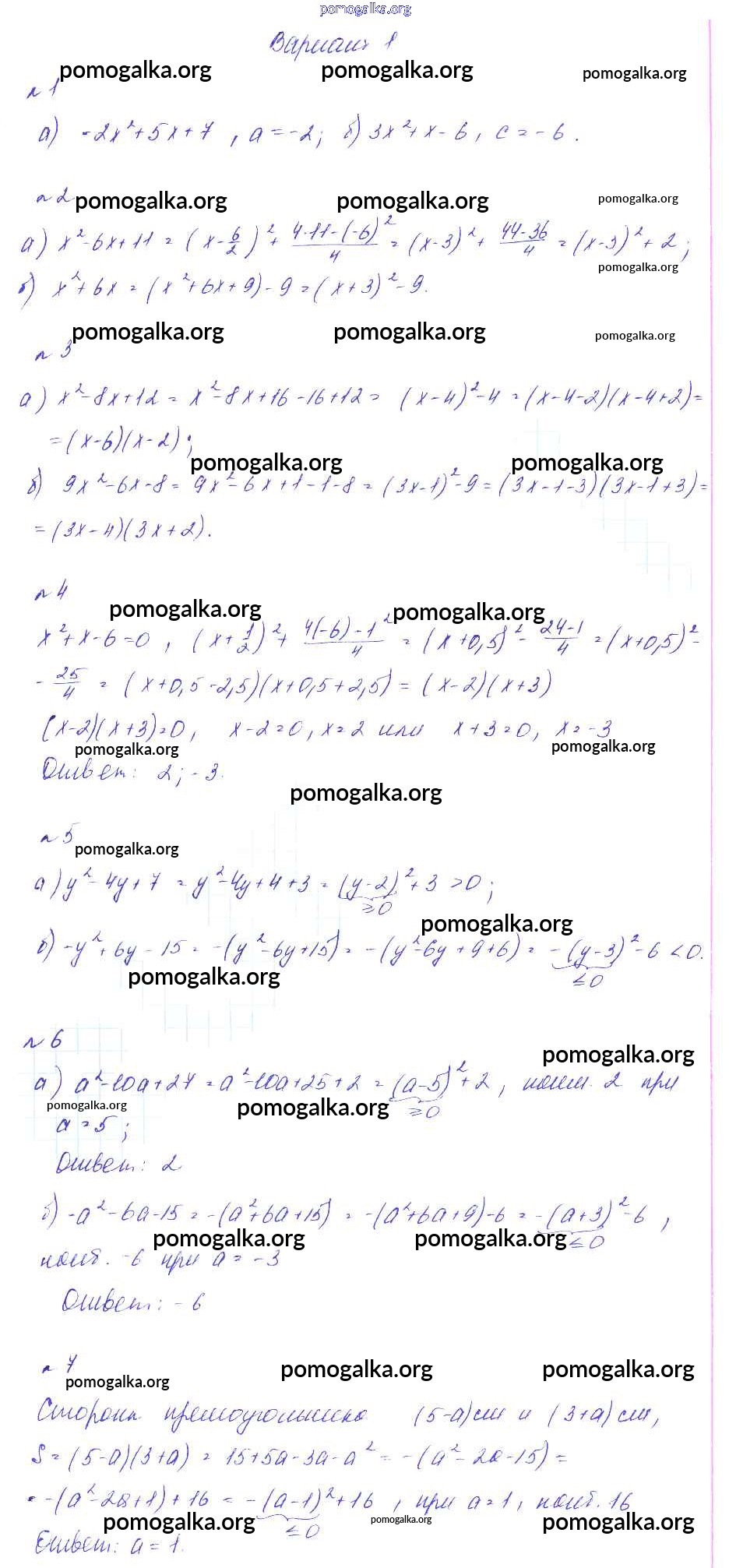 Готовые ответы - Алгебра 7 класс дидактические материалы. Методические рекомендации Феоктистов И.Е. - ср-16 самостоятельная работа Вариант 1