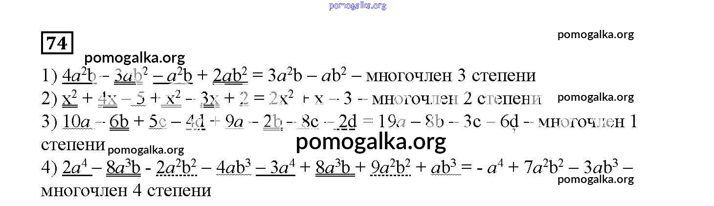 Готовые ответы - Алгебра 7 класс дидактические материалы Мерзляк А.Г. - вариант 1 74