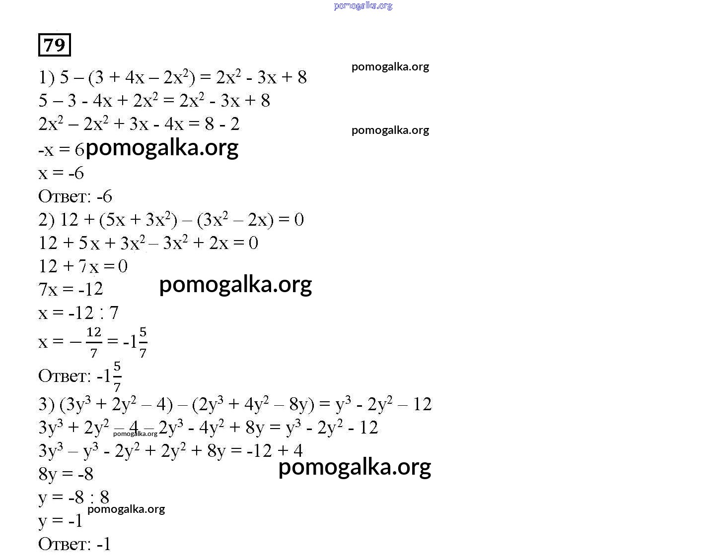 Готовые ответы - Алгебра 7 класс дидактические материалы Мерзляк А.Г. - вариант 3 79