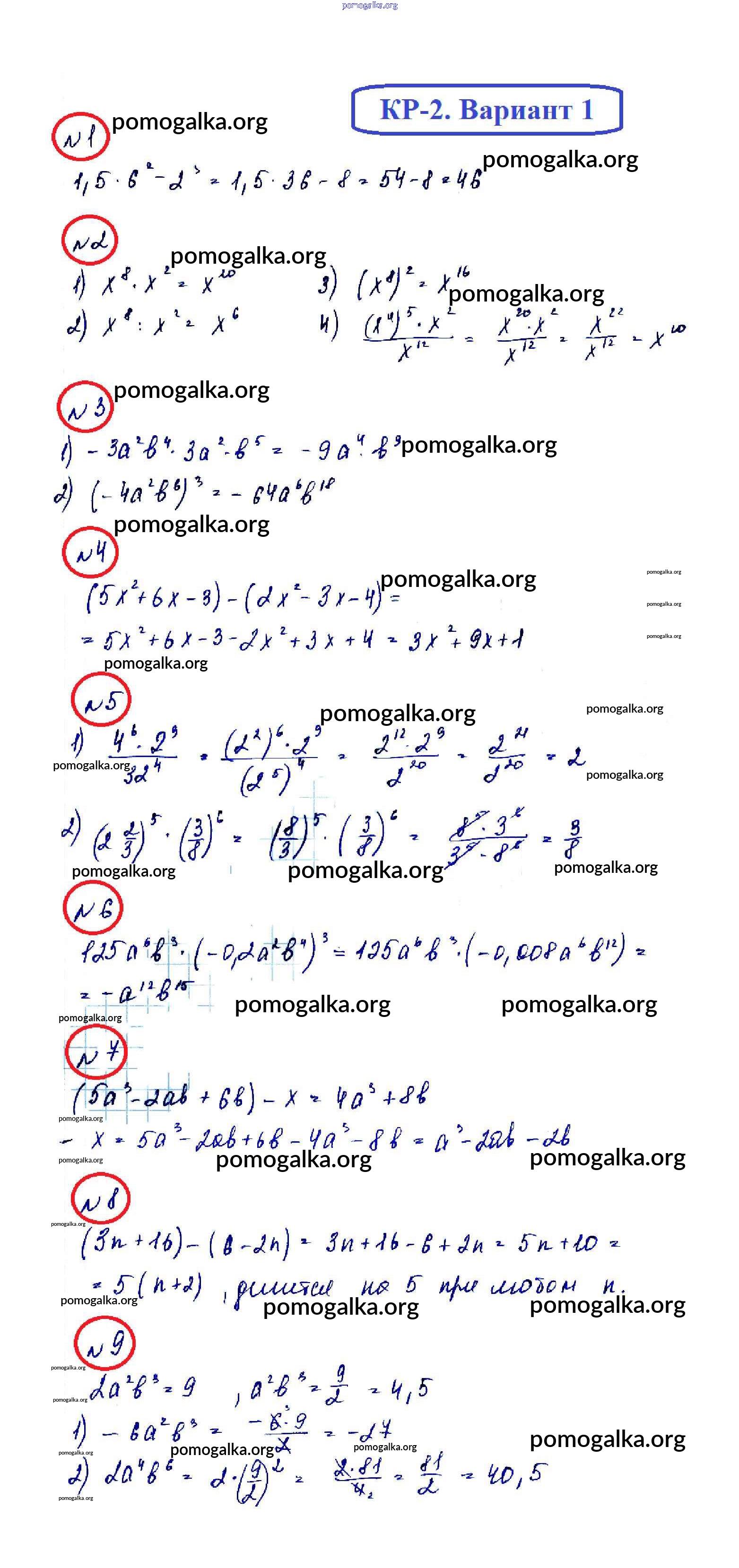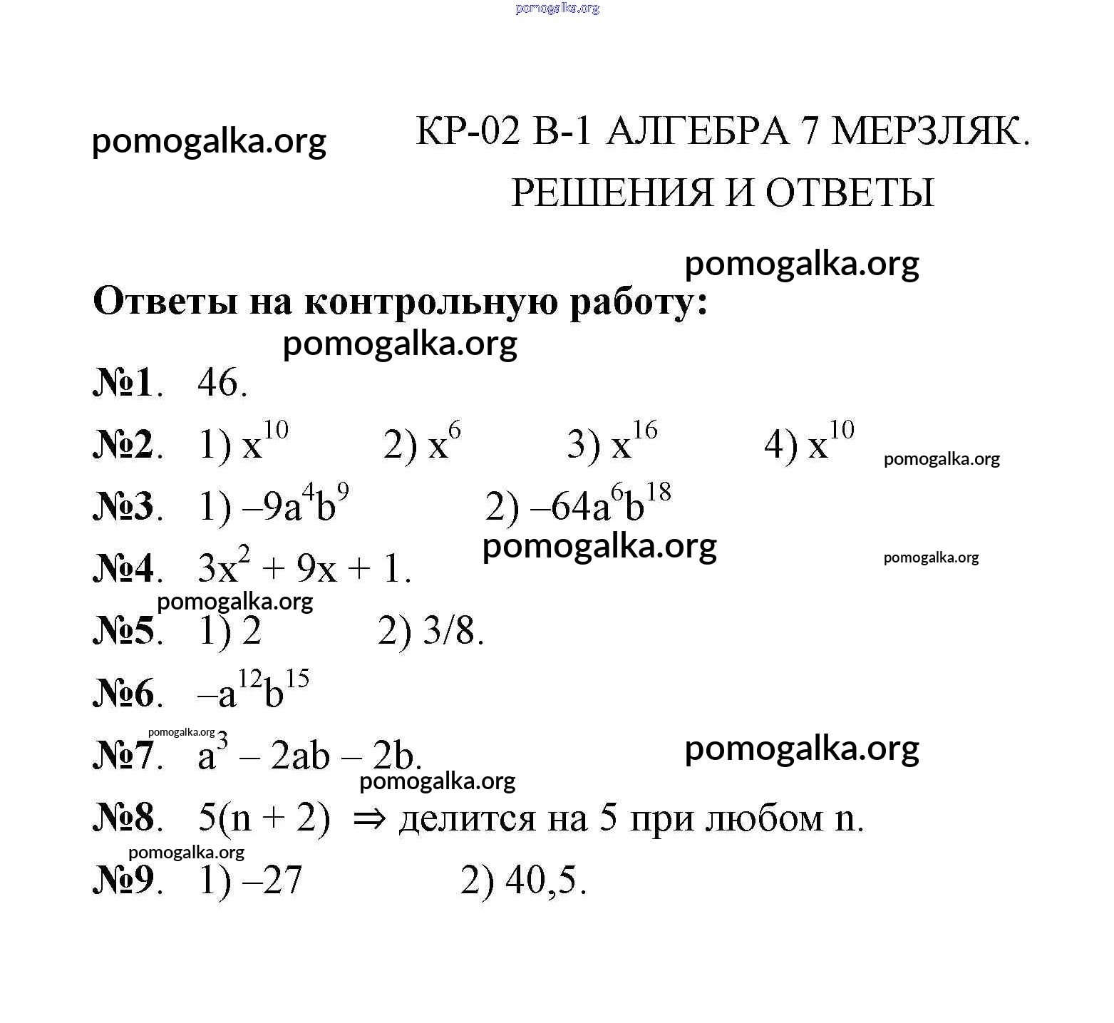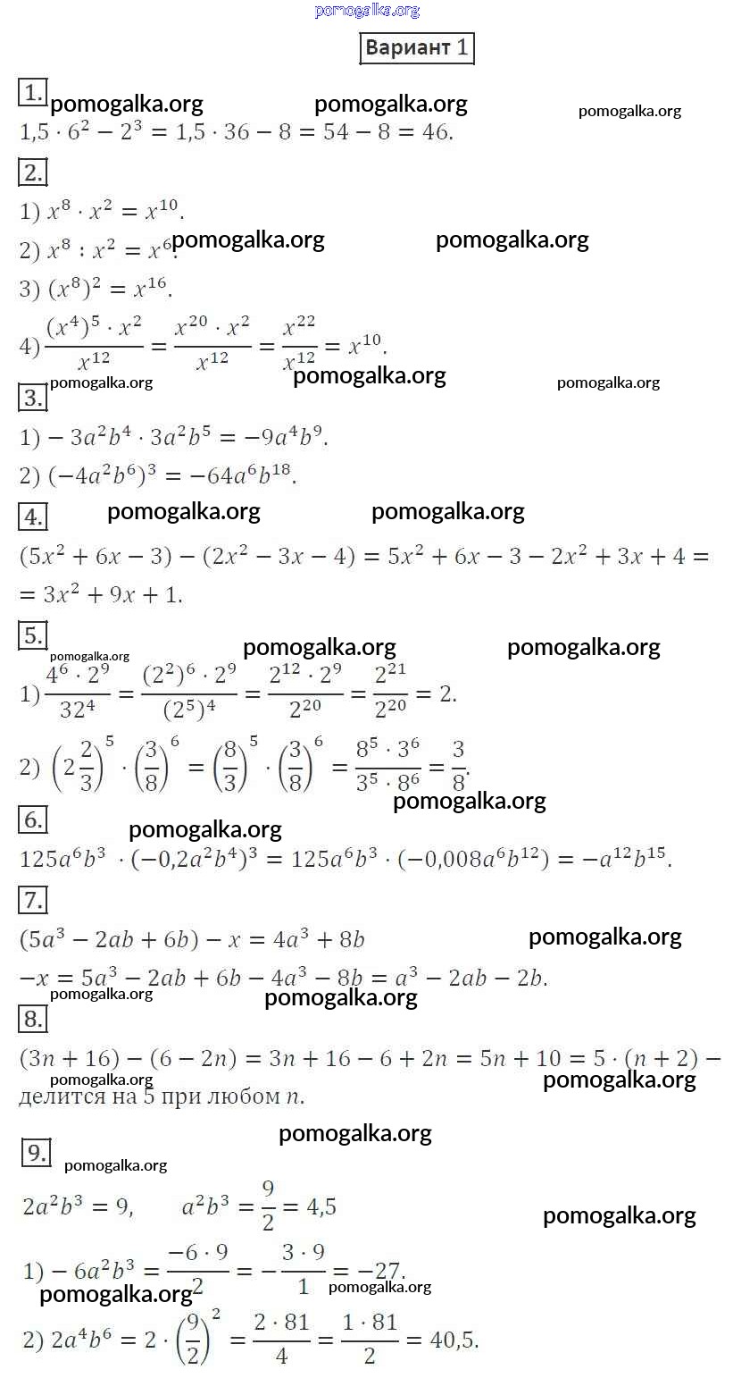 Готовые ответы - Алгебра 7 класс дидактические материалы Мерзляк А.Г. - кр-2. вариант контрольная работа 1