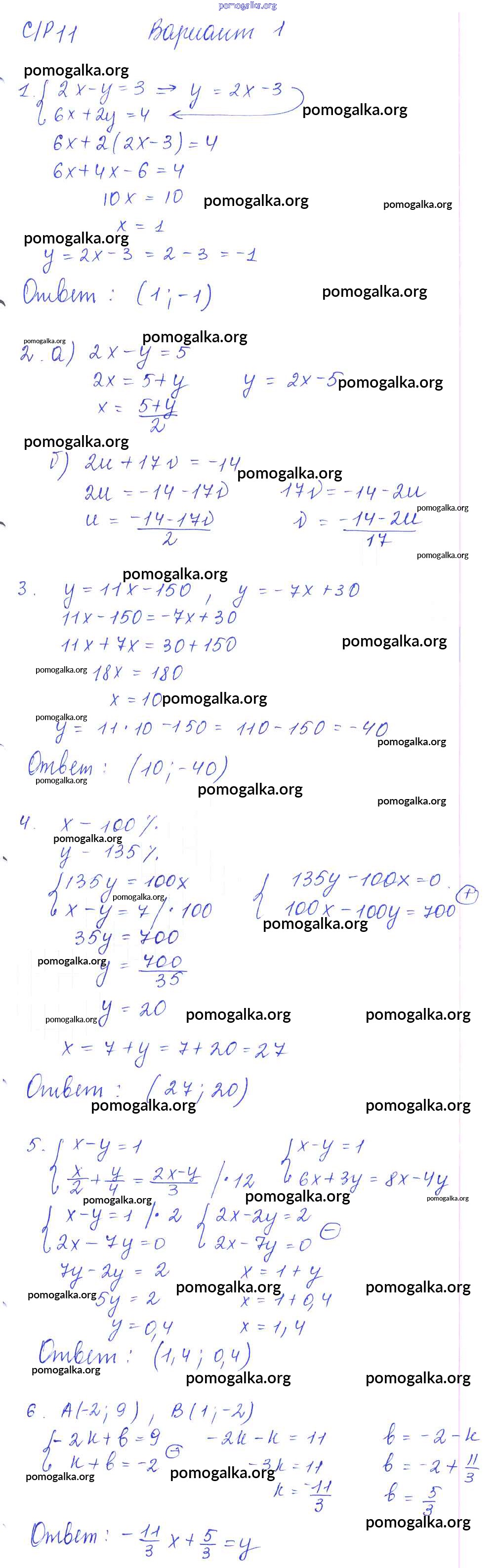 Готовые ответы - Алгебра 7 класс дидактические материалы Попов М.А. - ср-11 самостоятельная работа. вариант 1
