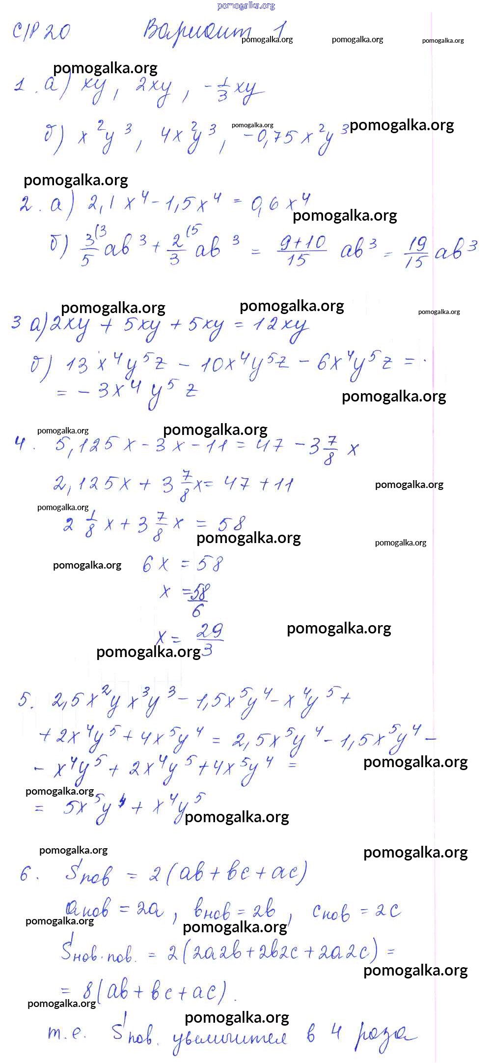 Готовые ответы - Алгебра 7 класс дидактические материалы Попов М.А. - ср-20 самостоятельная работа. вариант 1