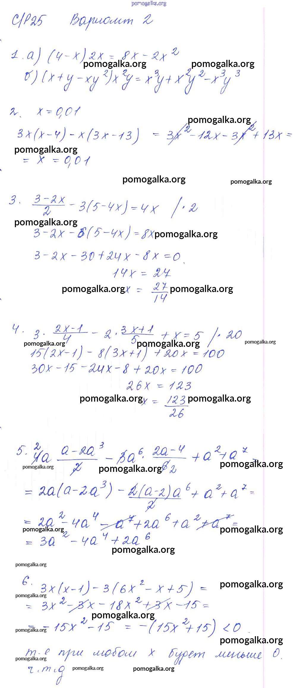 Готовые ответы - Алгебра 7 класс дидактические материалы Попов М.А. - ср-25 самостоятельная работа. вариант 2