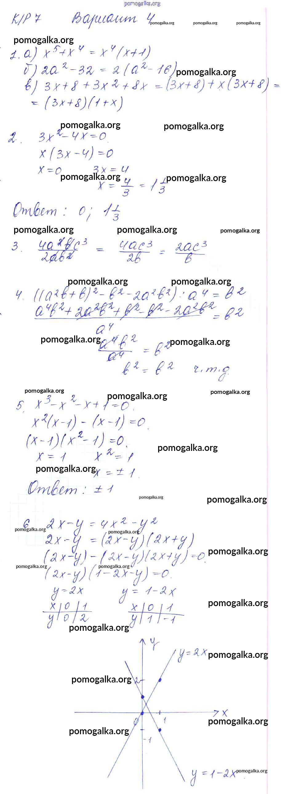 Готовые ответы - Алгебра 7 класс дидактические материалы Попов М.А. - кр-7 контрольная работа. вариант 4