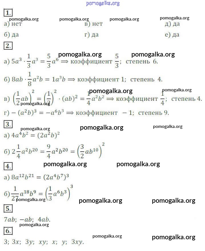 Готовые ответы - Алгебра 7 класс дидактические материалы Потапов М.К. - ср-6. вариант самостоятельная работа 1
