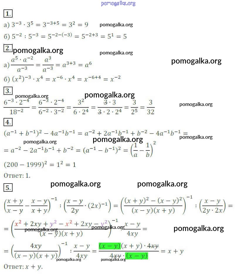 Готовые ответы - Алгебра 7 класс дидактические материалы Потапов М.К. - кр-5. вариант контрольная работа 1