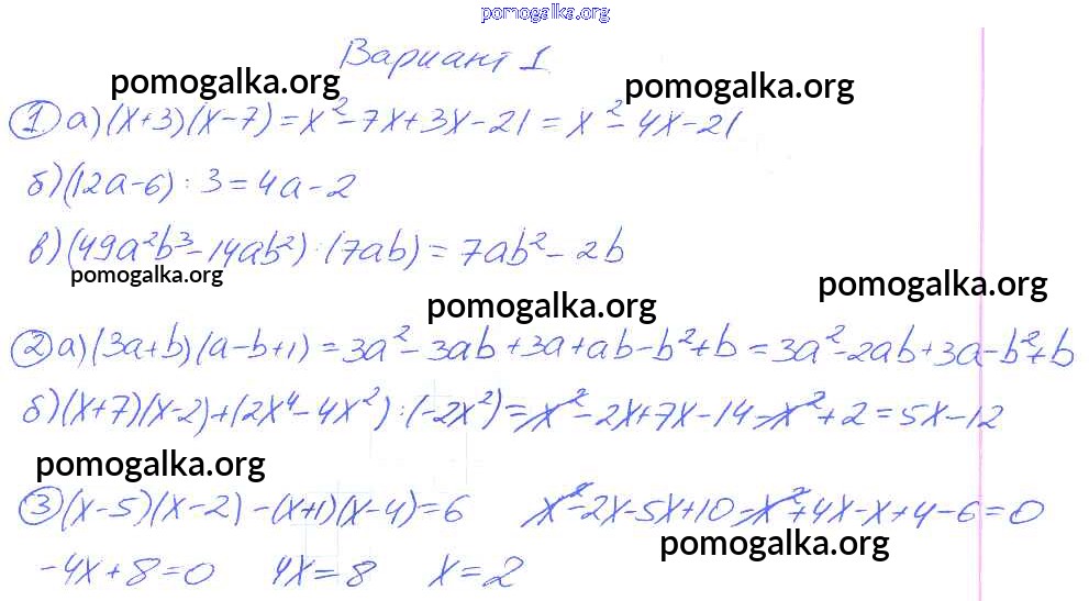 Готовые ответы - Алгебра 7 класс дидактические материалы Зив Б.Г. - ср-10 самостоятельная работа 1