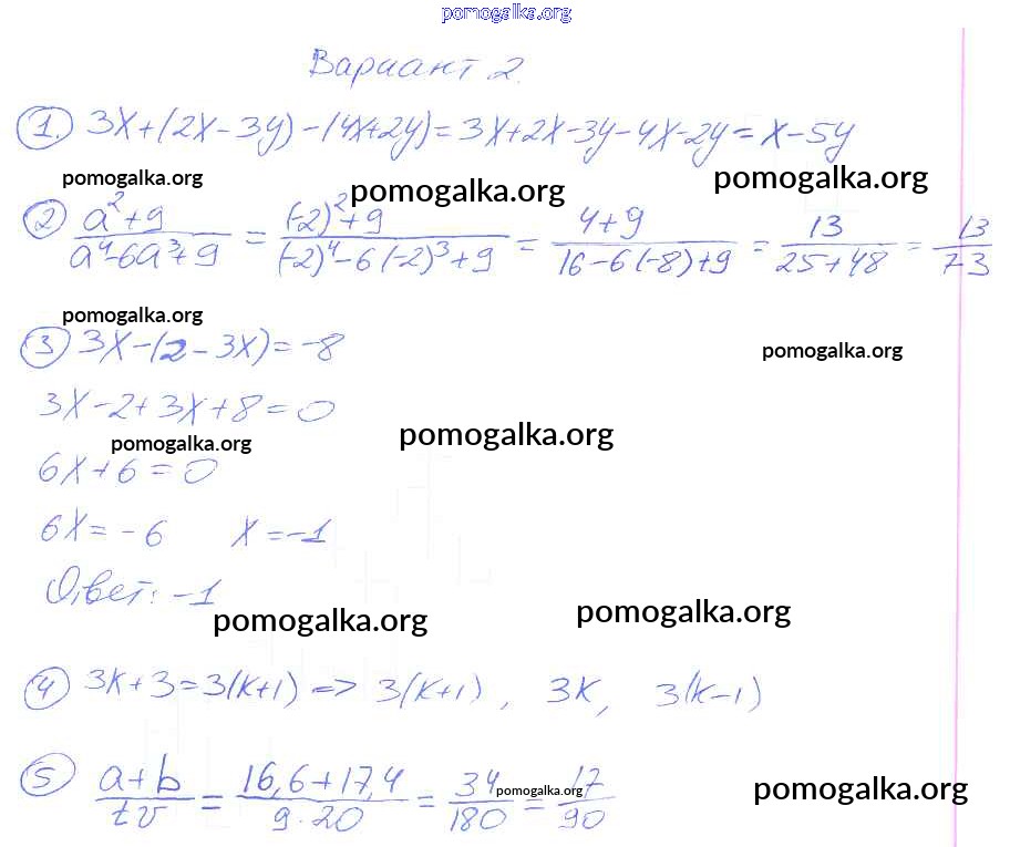 Готовые ответы - Алгебра 7 класс дидактические материалы Зив Б.Г. - кр-1 контрольная работа 2
