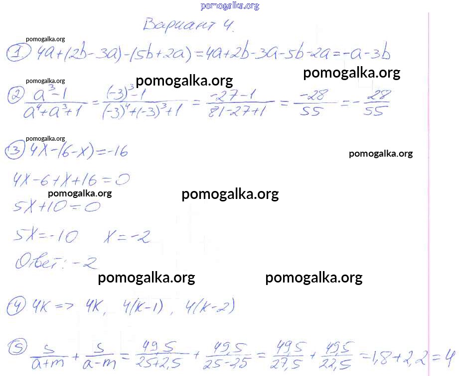 Готовые ответы - Алгебра 7 класс дидактические материалы Зив Б.Г. - кр-1 контрольная работа 4