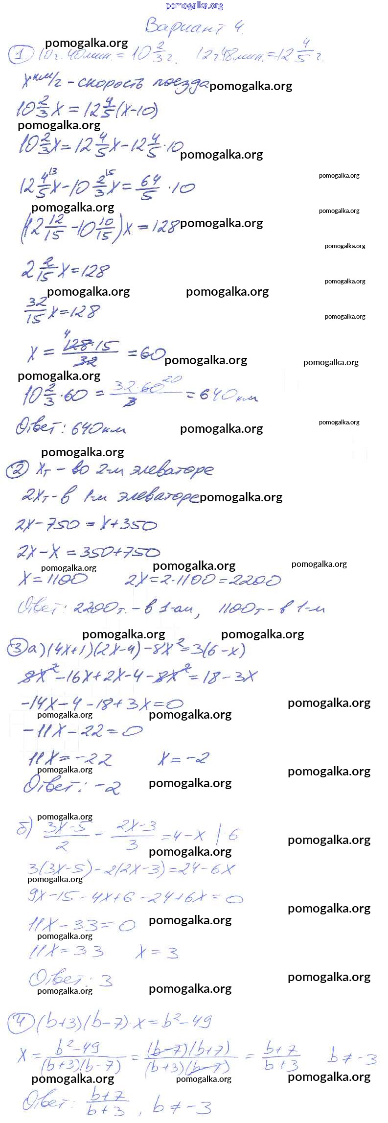 Готовые ответы - Алгебра 7 класс дидактические материалы Зив Б.Г. - кр-2 контрольная работа 4