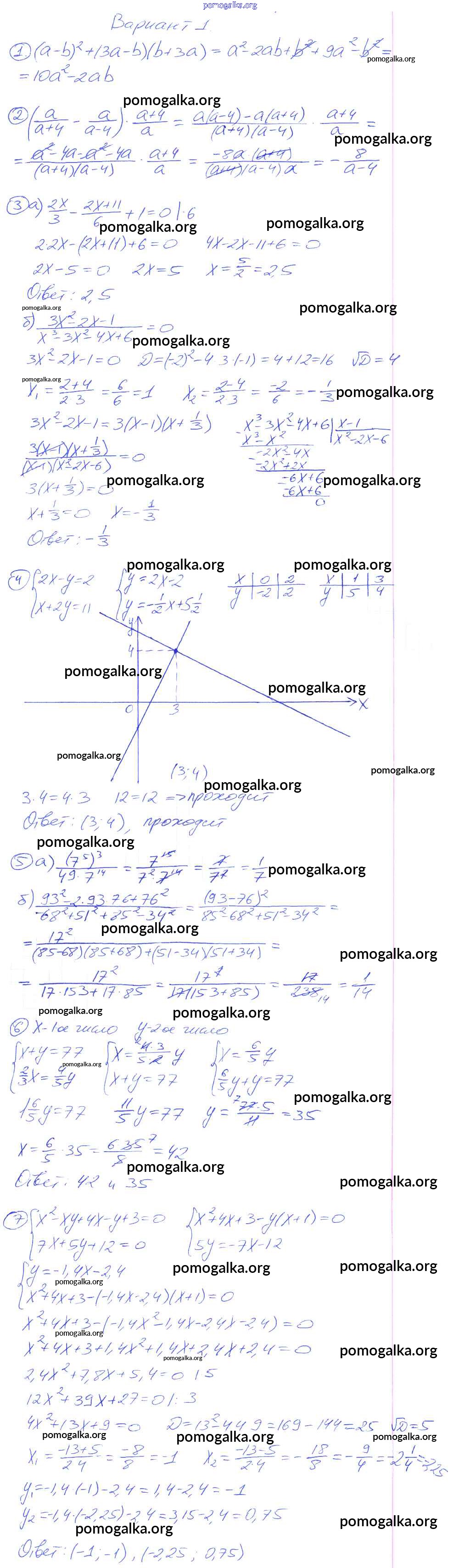 Готовые ответы - Алгебра 7 класс дидактические материалы Зив Б.Г. - кр-8 контрольная работа 1