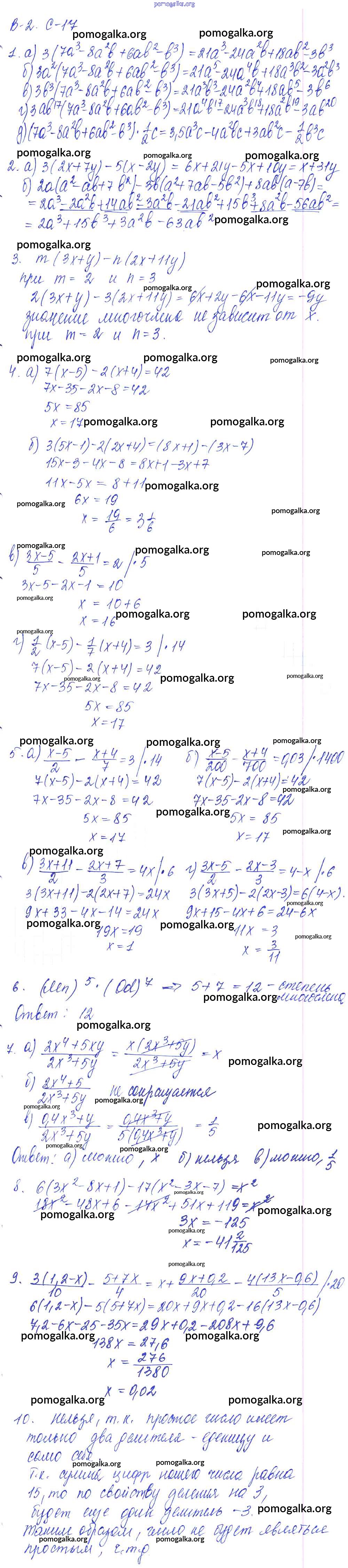 Готовые ответы - Алгебра 7 класс дидактические материалы Звавич Л.И. (к уч. Макарычев) - ср-17 самостоятельная работа Вариант 2