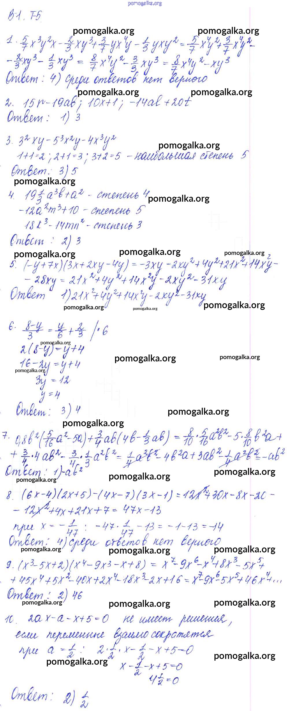 Готовые ответы - Алгебра 7 класс дидактические материалы Звавич Л.И. (к уч. Макарычев) - тест 5 тест Вариант 1