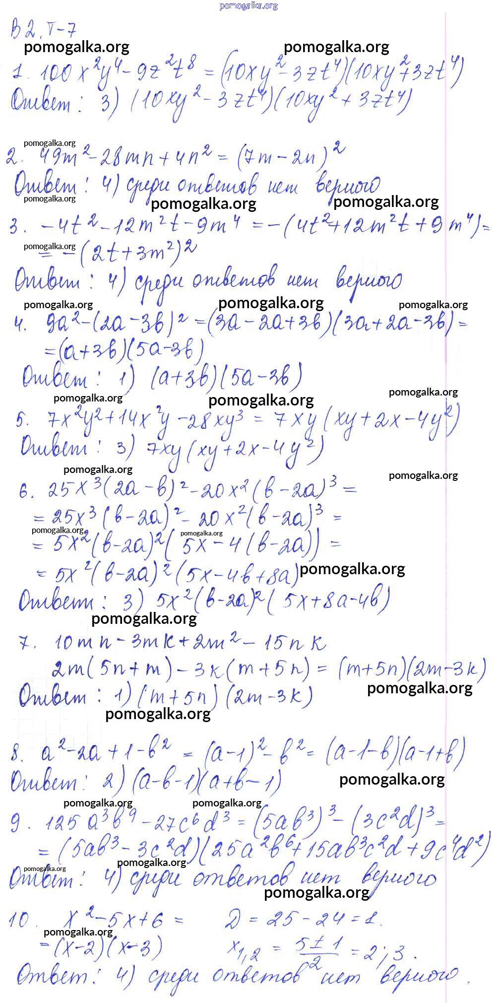 Готовые ответы - Алгебра 7 класс дидактические материалы Звавич Л.И. (к уч. Макарычев) - тест 7 тест Вариант 2