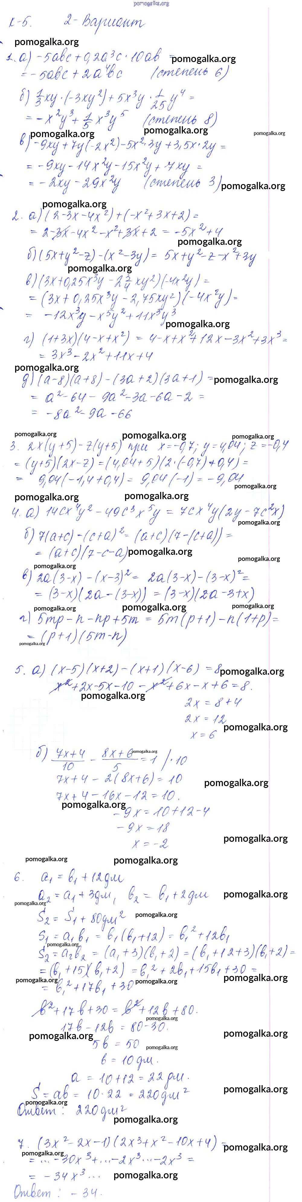 Готовые ответы - Алгебра 7 класс дидактические материалы Звавич Л.И. (к уч. Макарычев) - кр-5 контрольная работа Вариант 2