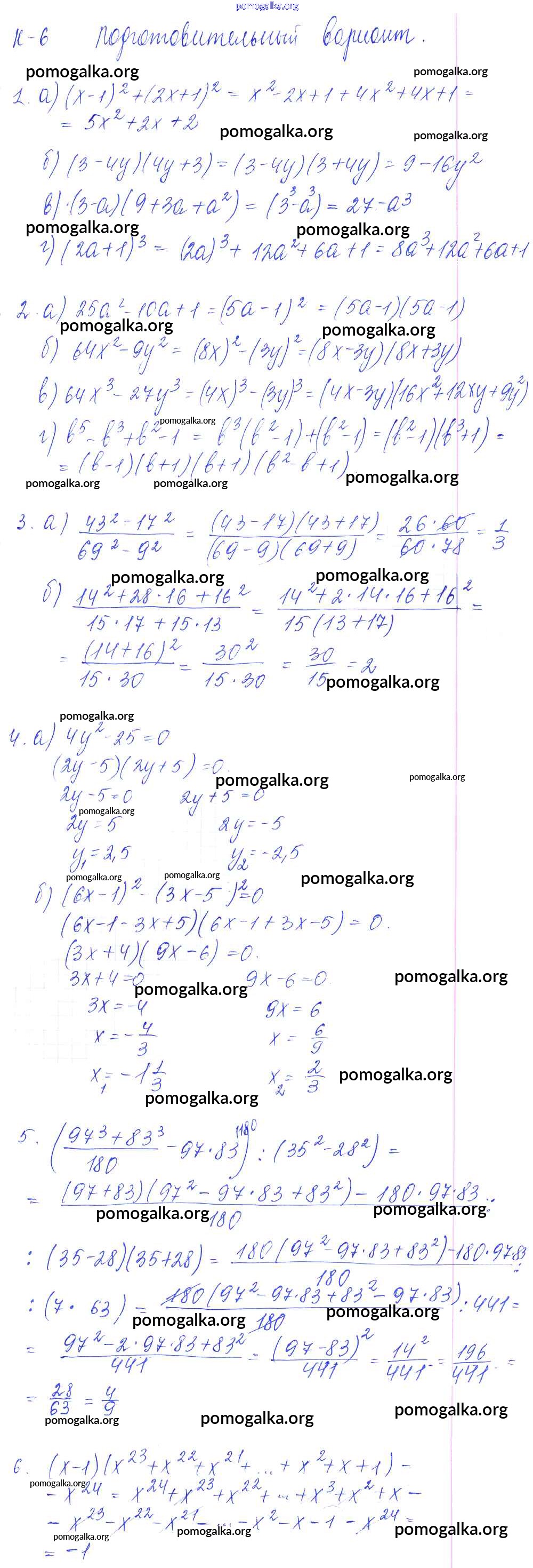 Готовые ответы - Алгебра 7 класс дидактические материалы Звавич Л.И. (к уч. Макарычев) - кр-6 контрольная работа Подготовительный вариант