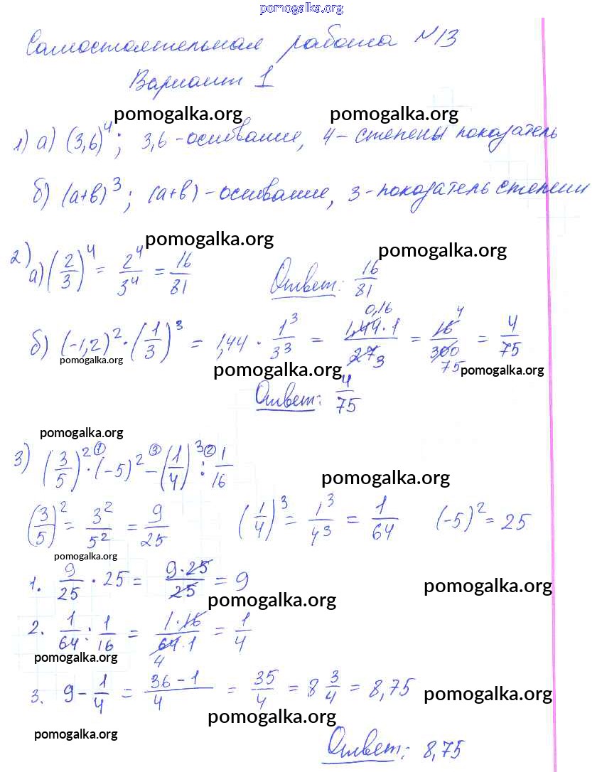 Готовые ответы - Алгебра 7 класс контрольные и самостоятельные работы Попов М.А. - ср-13 самостоятельная работа 1