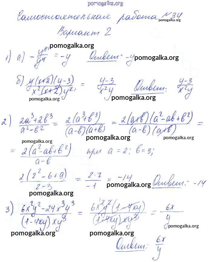 Готовые ответы - Алгебра 7 класс контрольные и самостоятельные работы Попов М.А. - ср-34 самостоятельная работа 2
