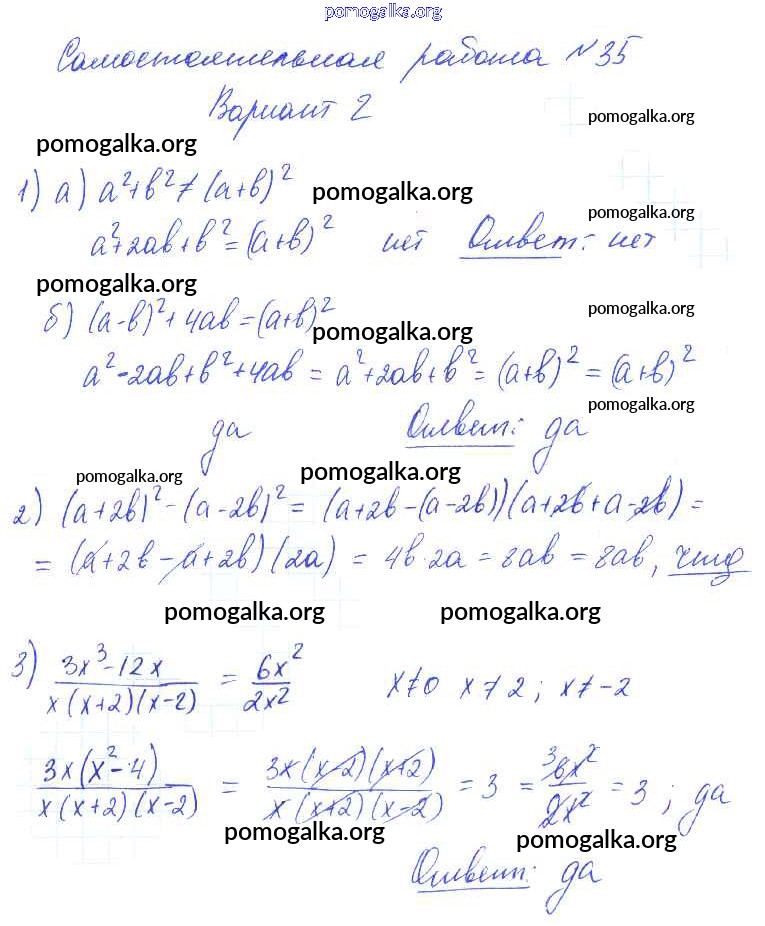 Готовые ответы - Алгебра 7 класс контрольные и самостоятельные работы Попов М.А. - ср-35 самостоятельная работа 2