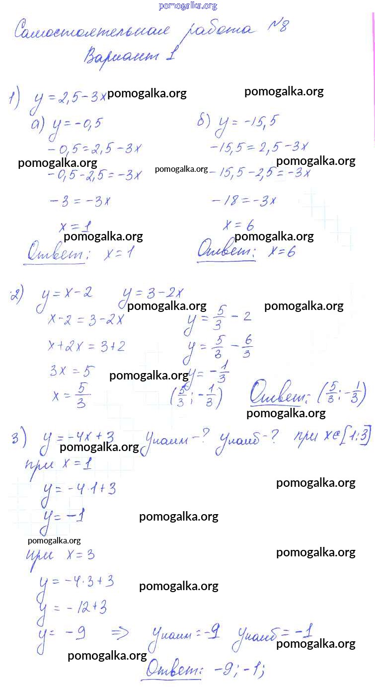 Готовые ответы - Алгебра 7 класс контрольные и самостоятельные работы Попов М.А. - ср-8 самостоятельная работа 1