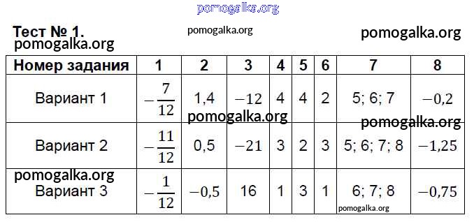 Готовые ответы - Алгебра 7 класс КИМ Глазков Ю.А. - тест 1