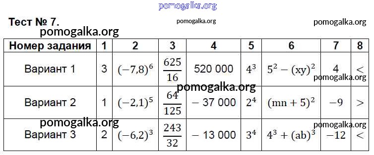 Готовые ответы - Алгебра 7 класс КИМ Глазков Ю.А. - тест 7