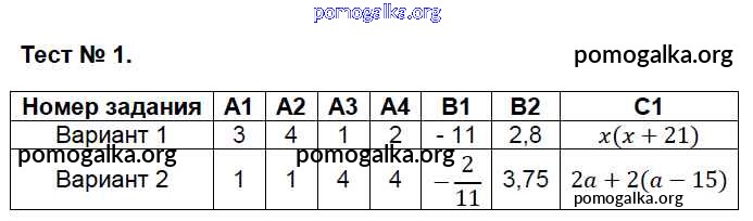 Готовые ответы - Алгебра 7 класс контрольно-измерительные материалы Мартышова Л.И. - тест 1