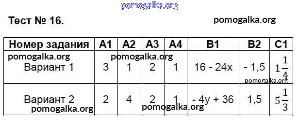 Готовые ответы - Алгебра 7 класс контрольно-измерительные материалы Мартышова Л.И. - тест 16