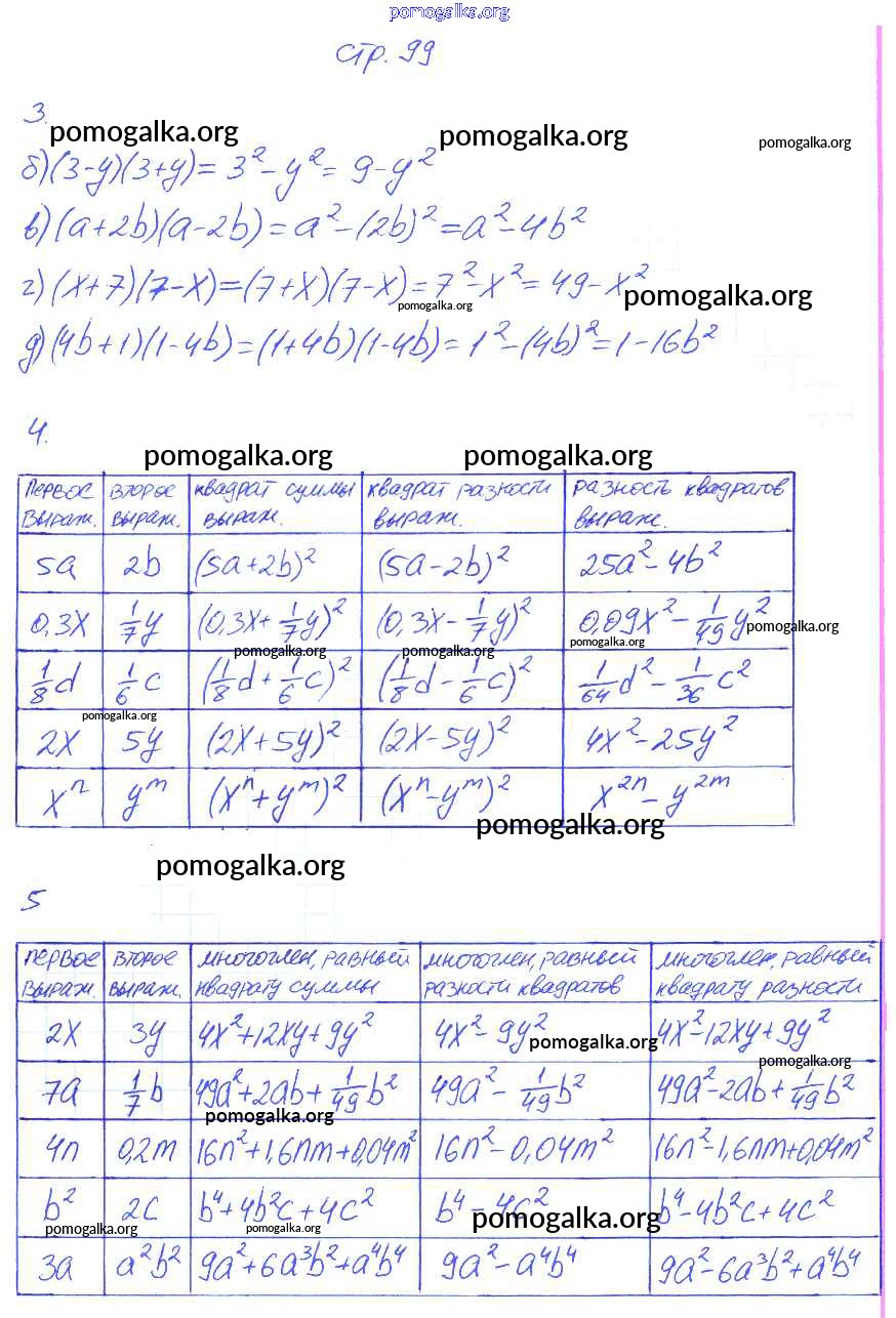 Готовые ответы - Алгебра 7 класс рабочая тетрадь Ключникова Е.М. - страница 99