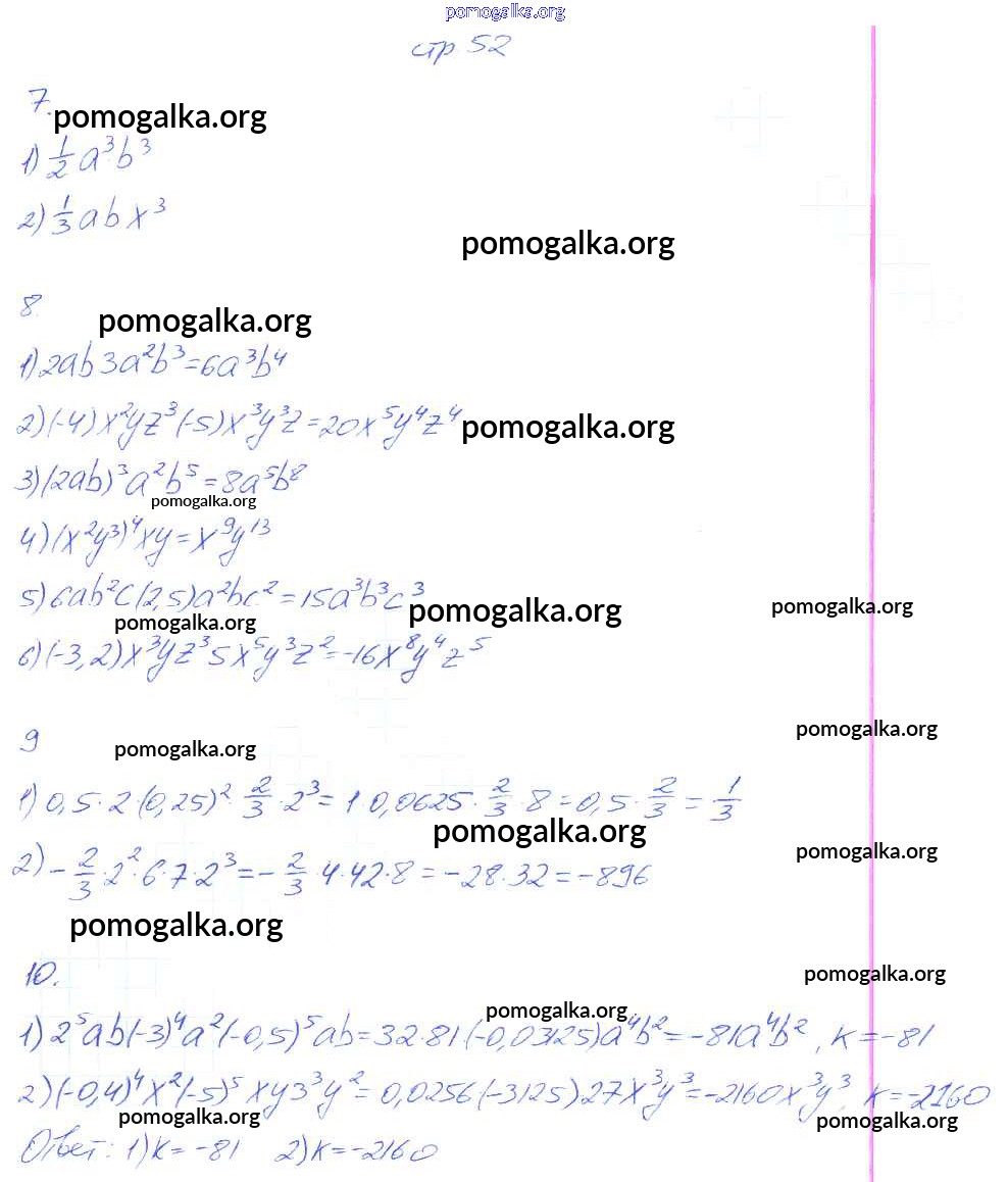 Готовые ответы - Алгебра 7 класс рабочая тетрадь Колягин Ю.М. - часть 1 52