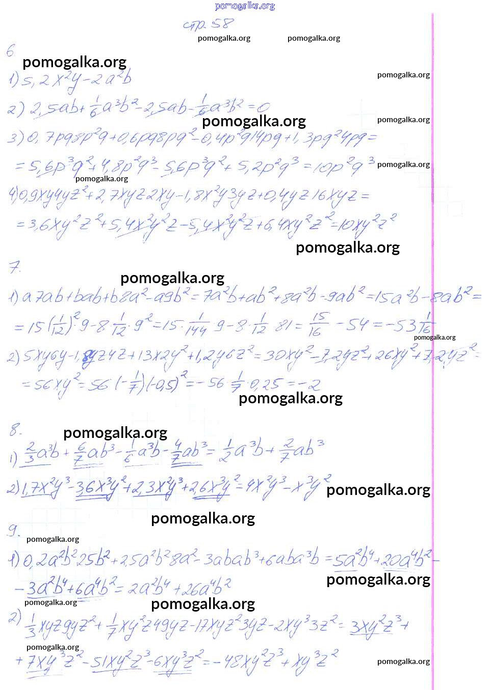 Готовые ответы - Алгебра 7 класс рабочая тетрадь Колягин Ю.М. - часть 1 58