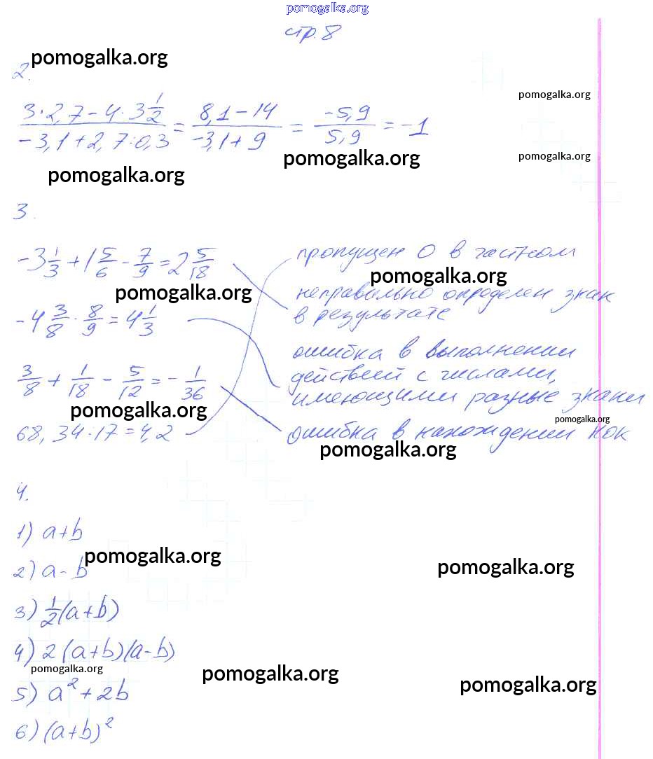 Готовые ответы - Алгебра 7 класс рабочая тетрадь Колягин Ю.М. - часть 1 8
