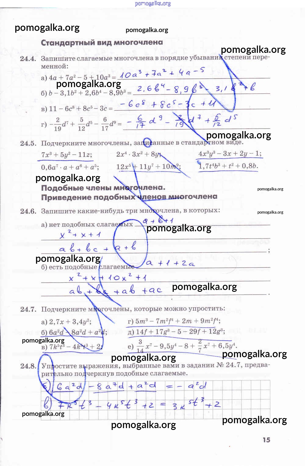 Готовые ответы - Алгебра 7 класс рабочая тетрадь Зубарева И.И. - часть 2. страница 15