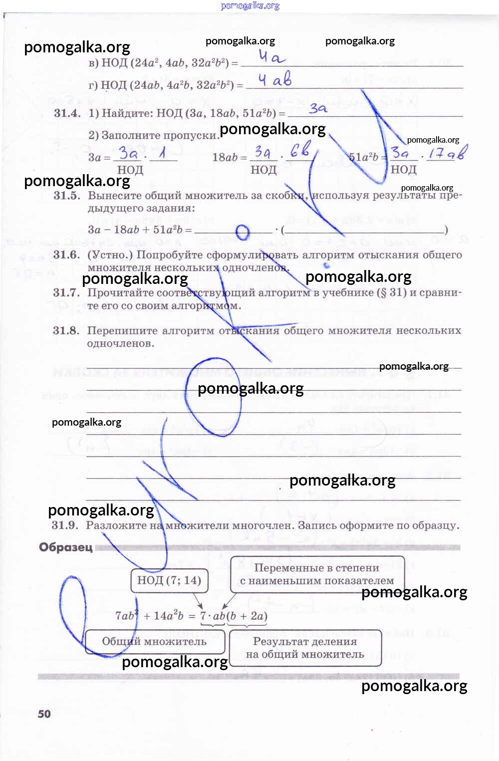 Готовые ответы - Алгебра 7 класс рабочая тетрадь Зубарева И.И. - часть 2. страница 50