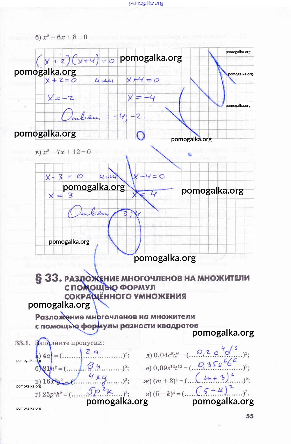 Готовые ответы - Алгебра 7 класс рабочая тетрадь Зубарева И.И. - часть 2. страница 55