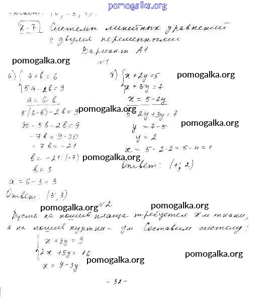 КР-7. Системы линейных уравнений с двумя переменными
