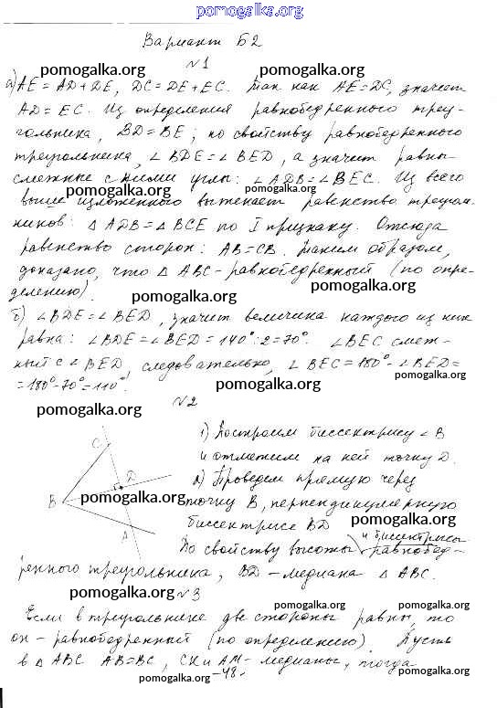 КР-3. Три признака равенства треугольников