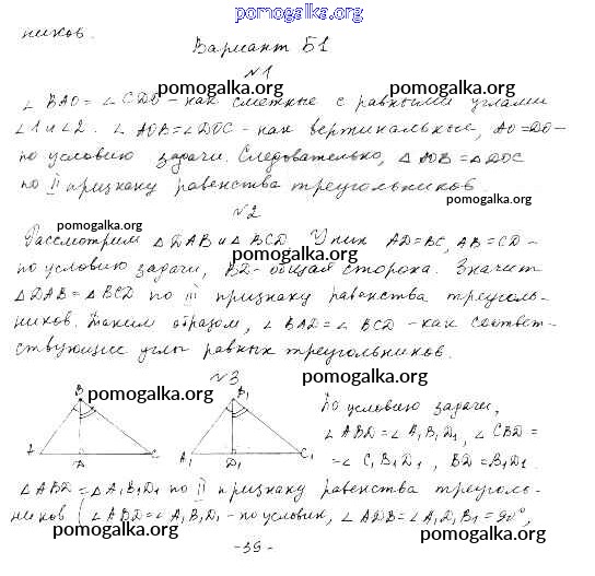 КР-2. Первый и второй признаки равенства треугольников