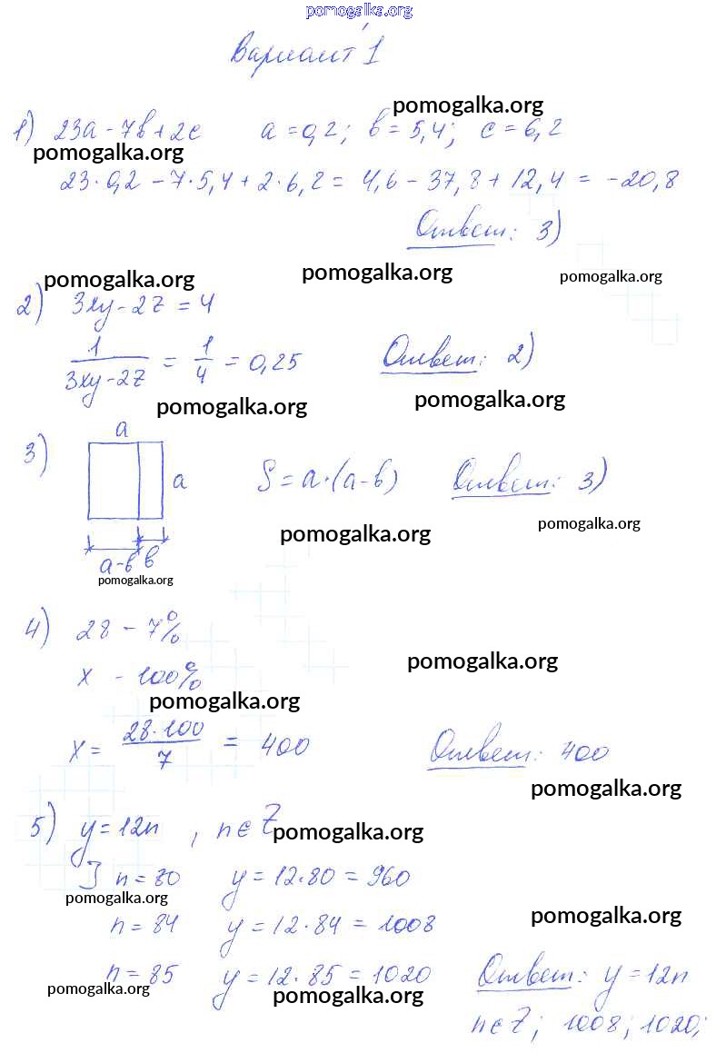 Готовые ответы - Алгебра 7 класс самостоятельные и контрольные работы Глазков Ю.А. (к уч.Макарычева) - ср-1 самостоятельная работа вариант 1