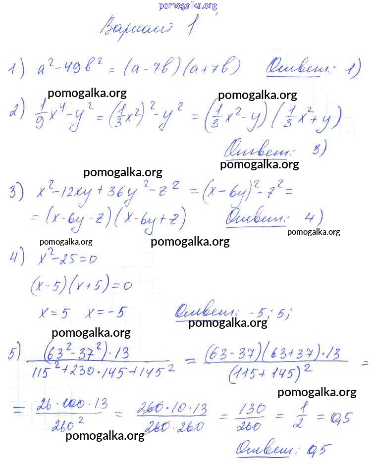 Готовые ответы - Алгебра 7 класс самостоятельные и контрольные работы Глазков Ю.А. (к уч.Макарычева) - ср-25 самостоятельная работа вариант 1