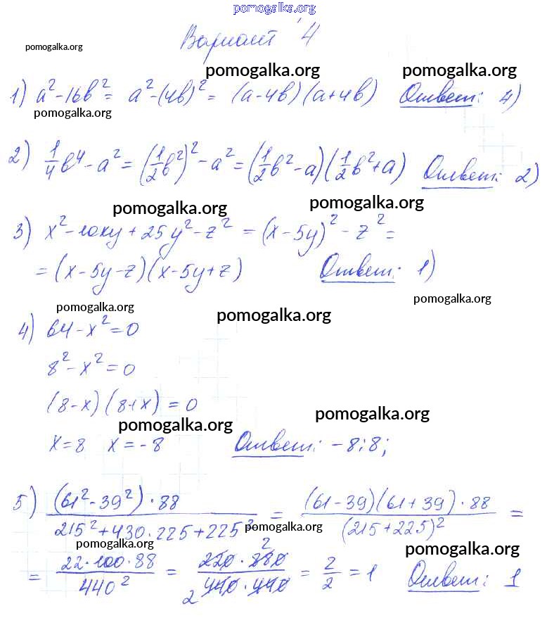 Готовые ответы - Алгебра 7 класс самостоятельные и контрольные работы Глазков Ю.А. (к уч.Макарычева) - ср-25 самостоятельная работа вариант 4