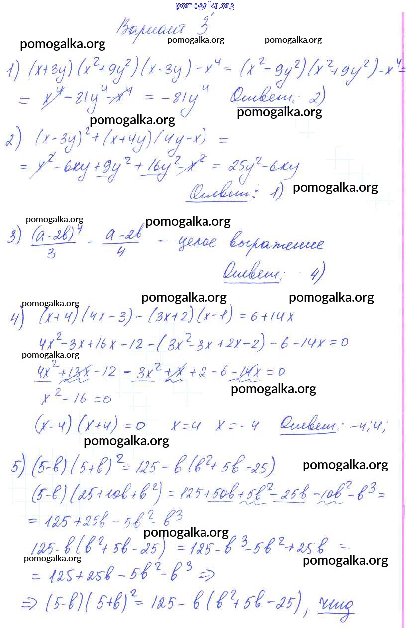 Готовые ответы - Алгебра 7 класс самостоятельные и контрольные работы Глазков Ю.А. (к уч.Макарычева) - ср-27 самостоятельная работа вариант 3