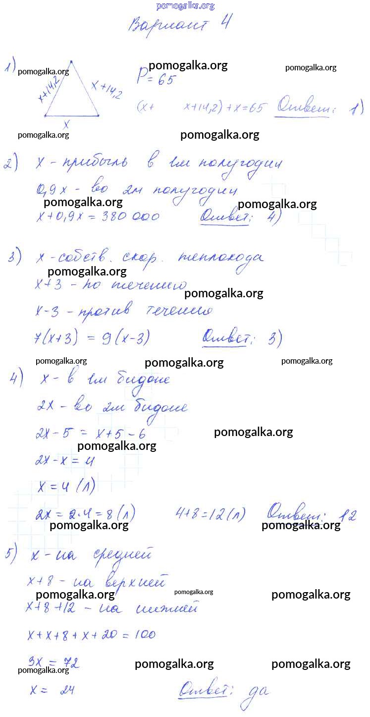 Готовые ответы - Алгебра 7 класс самостоятельные и контрольные работы Глазков Ю.А. (к уч.Макарычева) - ср-6 самостоятельная работа вариант 4