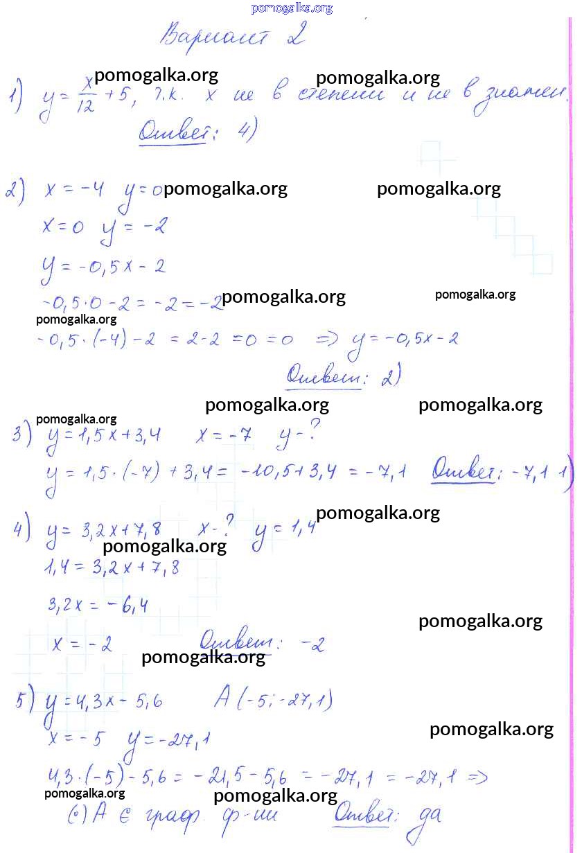 Готовые ответы - Алгебра 7 класс самостоятельные и контрольные работы Глазков Ю.А. (к уч.Макарычева) - ср-9 самостоятельная работа вариант 2