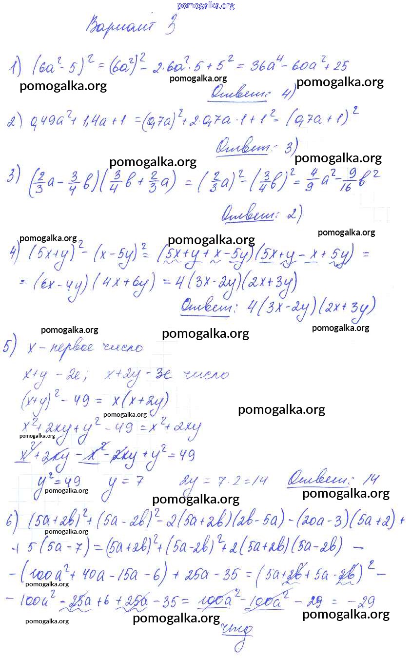 Готовые ответы - Алгебра 7 класс самостоятельные и контрольные работы Глазков Ю.А. (к уч.Макарычева) - кр-7 контрольная работа вариант 3