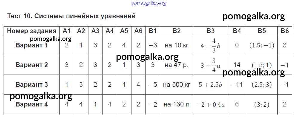 Готовые ответы - Алгебра 7 класс тематические тесты Чулков П.В. - тест 10
